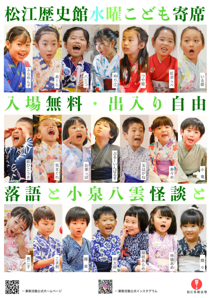 毎週水曜日午後3時半〜4時半は「松江歴史館水曜こども寄席」 次回、次々回は