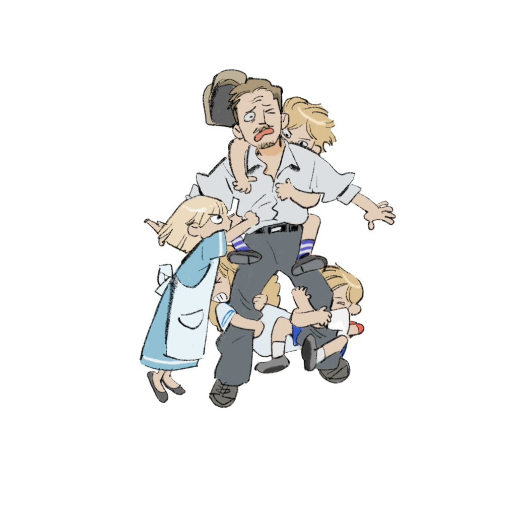 オランダの静かな村で暮らすオールト一家の、第二次世界大戦をはさむ数年間の物語です。お父さんファン・オールトは親切なお医者さん。やさしく芯の強いお母さん。個性豊かな六人の子どもたち。長女ミープはしっかり者で、社会事業学校で学んでいます。音楽好きでピアノの練習に励む長男ヤープ。次男ヤンは勉強嫌いで心配をかけていますが、あることをきっかけに父と同じ医者をこころざします。次女ルトは感受性豊かな少女。はにかみやですが魅力的で、私の一番好きな登場人物です。それにいたずら盛りの三男ピムと、生まれたばかりの赤ちゃんアンネ。