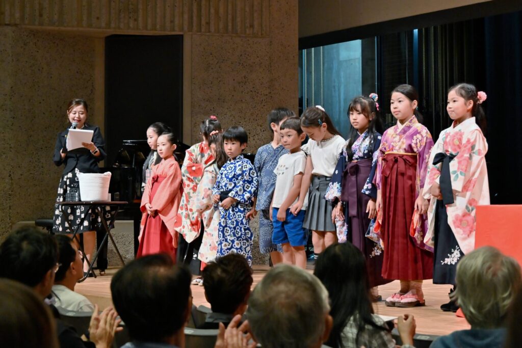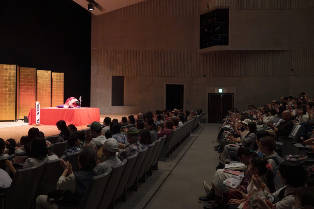 奥出雲町はこども落語文化を育ててもらった地です。そこで寄席をやらせてもらうことは、とてもうれしいことです。会場の横田コミセン大ホールのステージには高尾小学校の定式幕が置かれ、それもまた文化の共有をしているようで感激でした。お客様の掛け声や拍手、笑い声がとても温かく、子どもたちはみんないきいきと演じました。(写真は保護者)