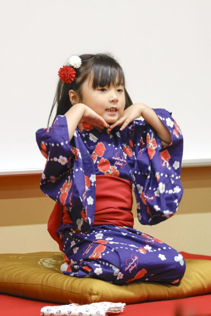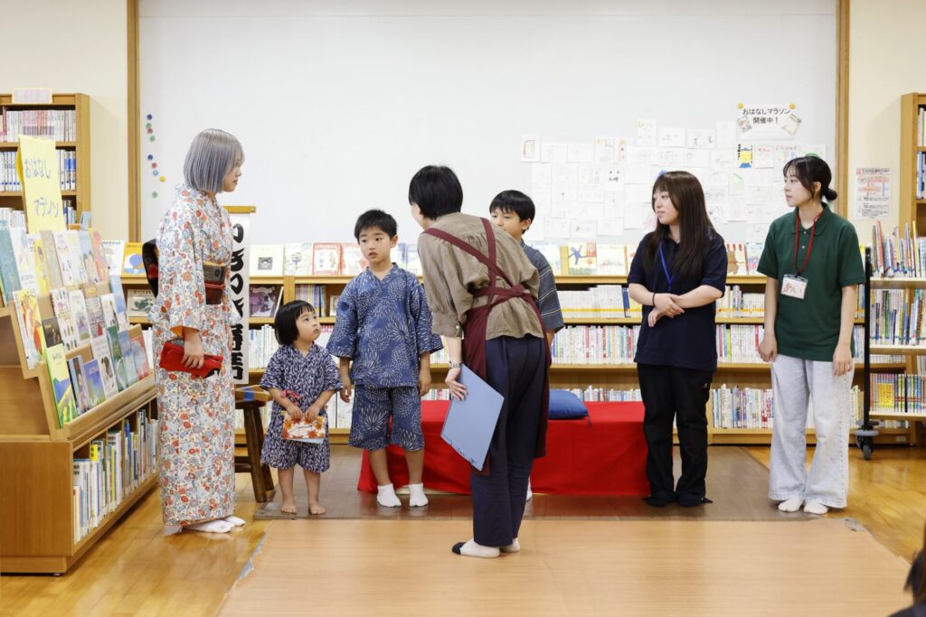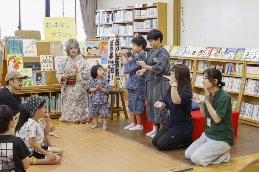 2回目の古江公民館。前回とは主催が異なりますが、お世話になったお顔もあって、子どもたちもすぐに打ち解けました。それぞれの話に笑ったり、あいずちをうったり、よく反応してくださるので子どもたちも気持ちを込めて演じることができました。
