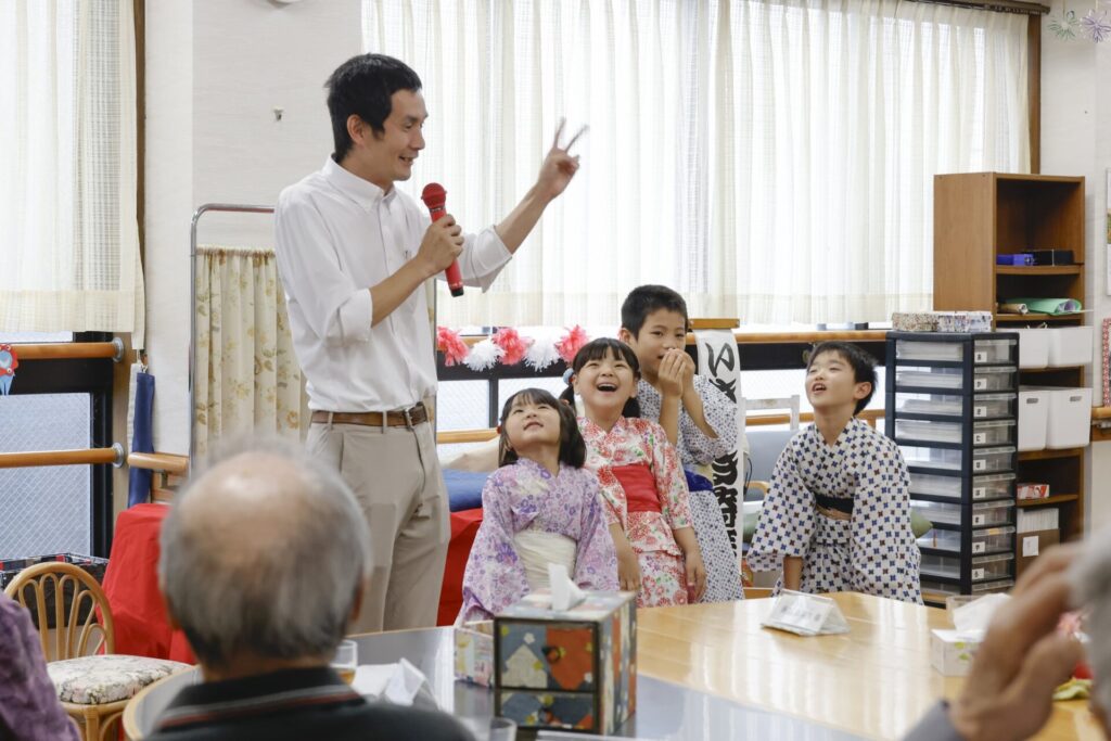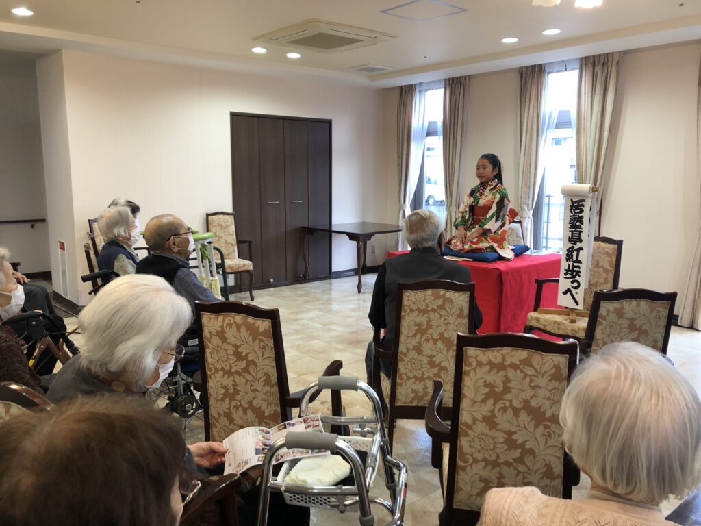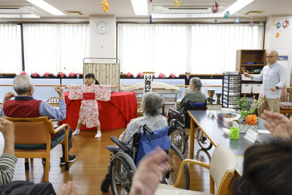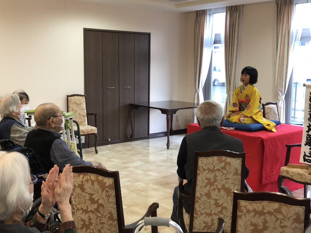 7月におじゃました鹿島デイサービスセンターこぢょっこらと、2回目の寄席。今回も大歓迎を受け、利用者さんから「かわいい」「上手」とたくさんお褒めの言葉をいただきました。終わってからの質問コーナーや、握手会も前回と同様でしたが、今回も愛おしそうに言葉をかけたり、手をにぎったりしているおじいちゃん、おばあちゃんたちの姿に胸が熱くなりました。