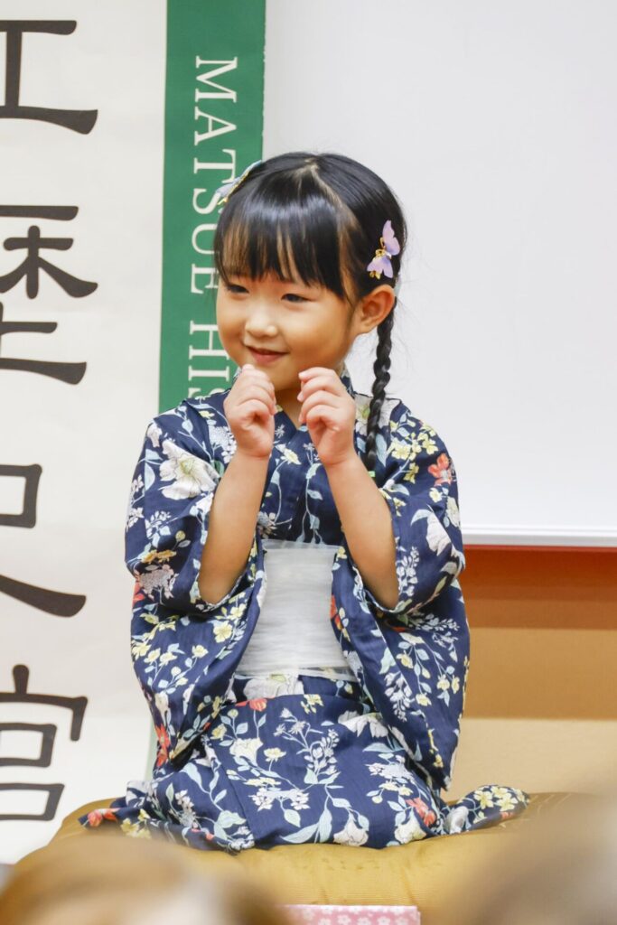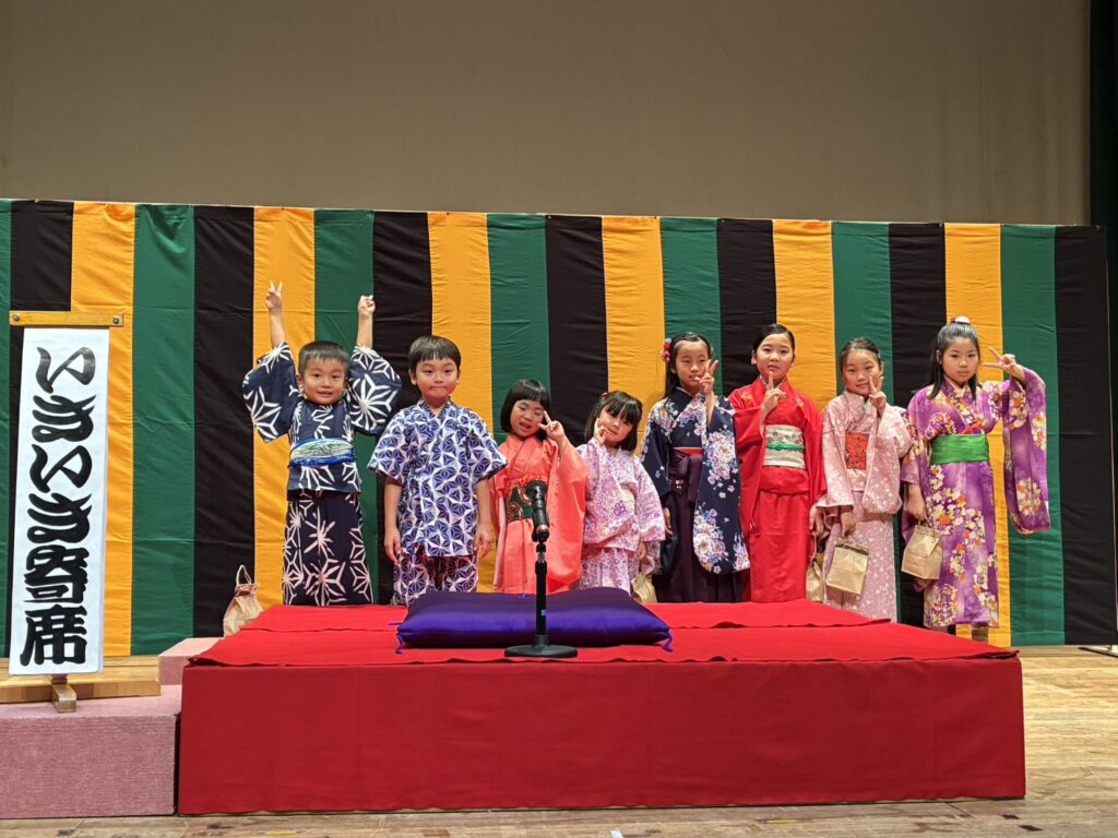 出雲市では二回目の寄席になりました。主催者は、たくさんの来場を想定して準備してくださいましたが、大きな会場の割に少しのお客様で、こどもたちが噺の途中に出入りするなど、出演者にはとてもきびしい寄席となりました。いつもとはかなりちがう雰囲気に教室生たちもずいぶんと緊張してしまいましたが、その中でも精一杯に演じ、「楽しかった」と感想を言っていました。いろんな場でやらせてもらうこと、きっとこの経験もこどもたちを鍛えてくれることと思います。時間をかけて計画を立て、さまざまな配慮をしてくださったPTA研修部の皆さま、どうもありがとうございました。(写真は保護者)