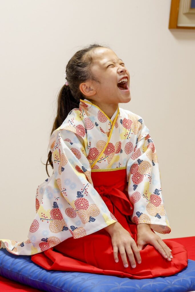 高校の同窓会で「ばけばけ」にちなんだツアーを計画されました。ゆかりの場所のフィールドワークに出かける前に、松江歴史館で「こども落語ー松江噺乃三種盛りー」を希望されました。同窓会から声がかかるのも、ツアーとセットなのも初めてです。復原長屋にちょうどよく収まる人数で、お客様も仲良し同士の安心感かとても盛り上がりました。終わってからも、話に花が咲き、記念撮影会が始まったり、終始なごやかなムードでした。