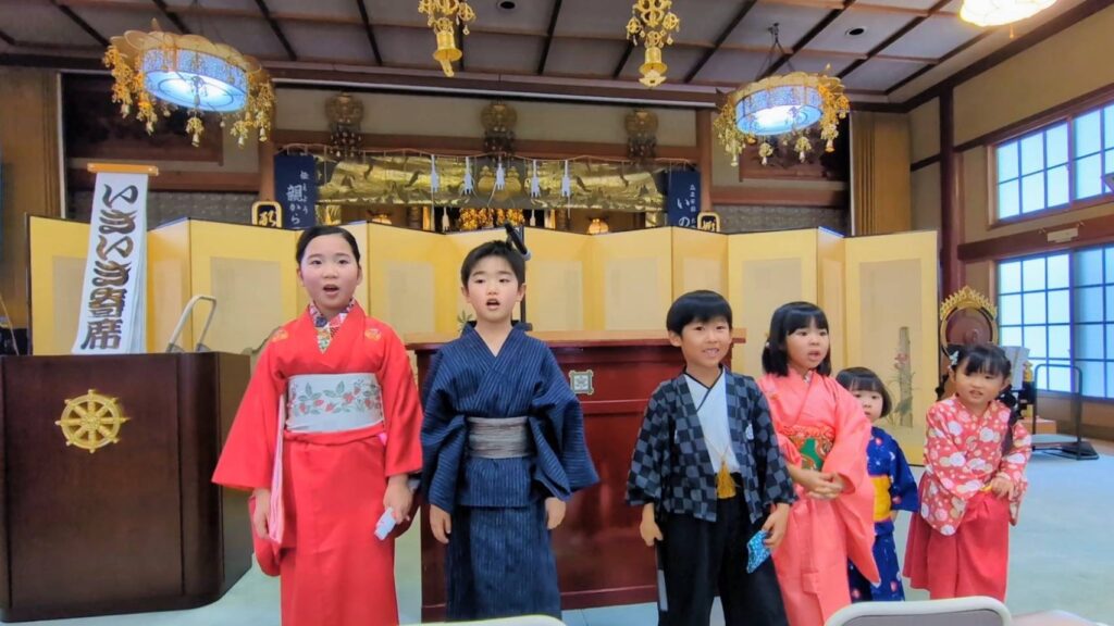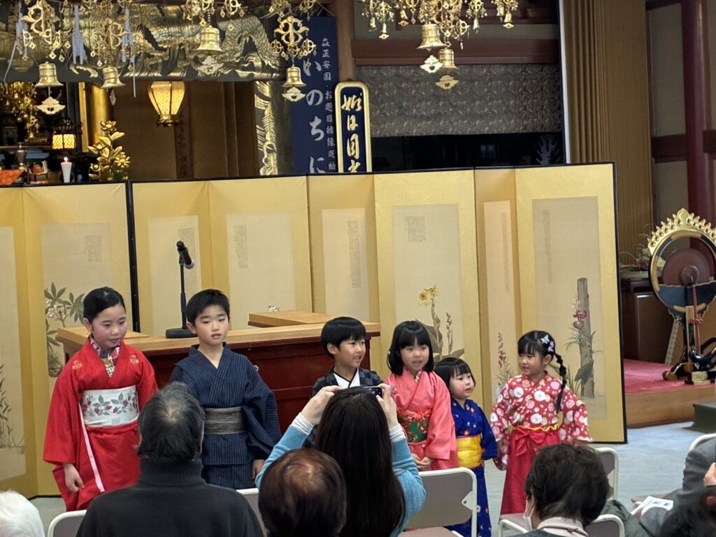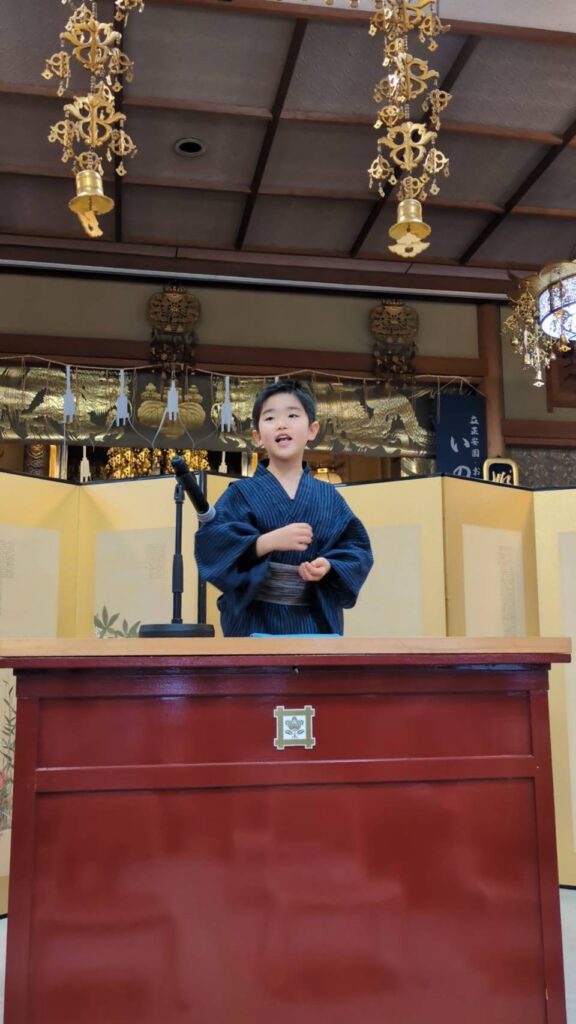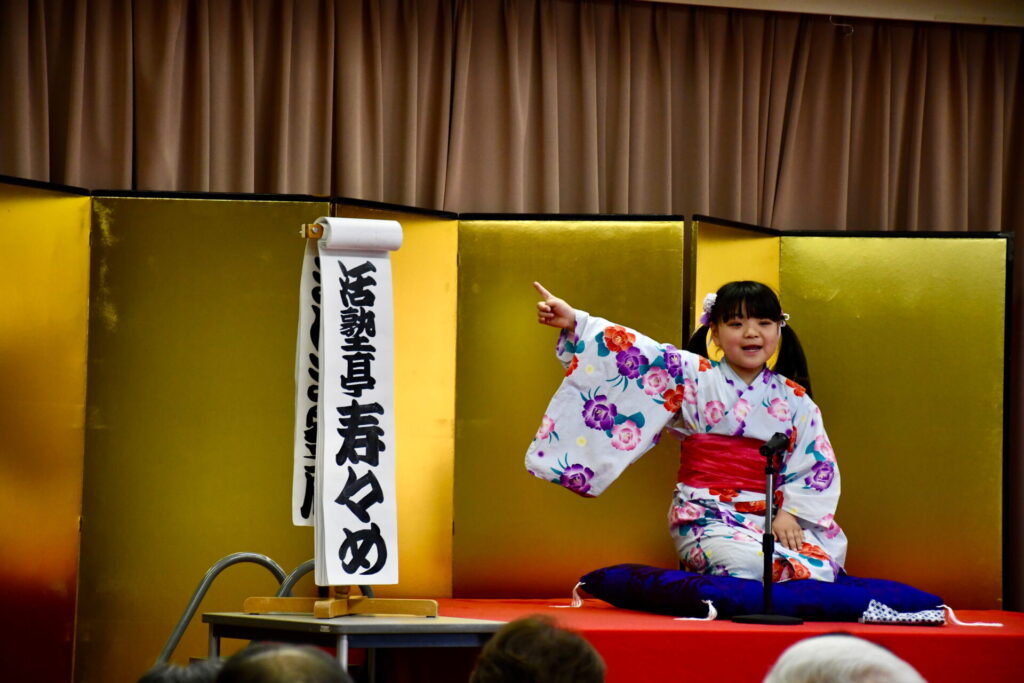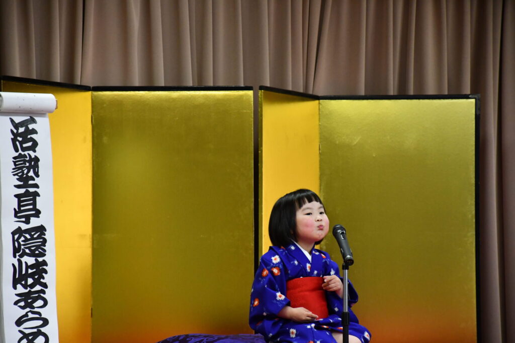松江算数活塾落語教室2026年は、出雲市多久町の大慶寺で始まりました。昨年に続いて年始法要後のアトラクションに招かれました。松江出身の落語家桂伸べえさんとの共演もかない、楽しいスタートとなりました。堂内一杯のお客様を前に、いつもとは違う高台から語りましたが、子どもたちはいつも通りの元気な落語を披露しました。(写真は保護者)