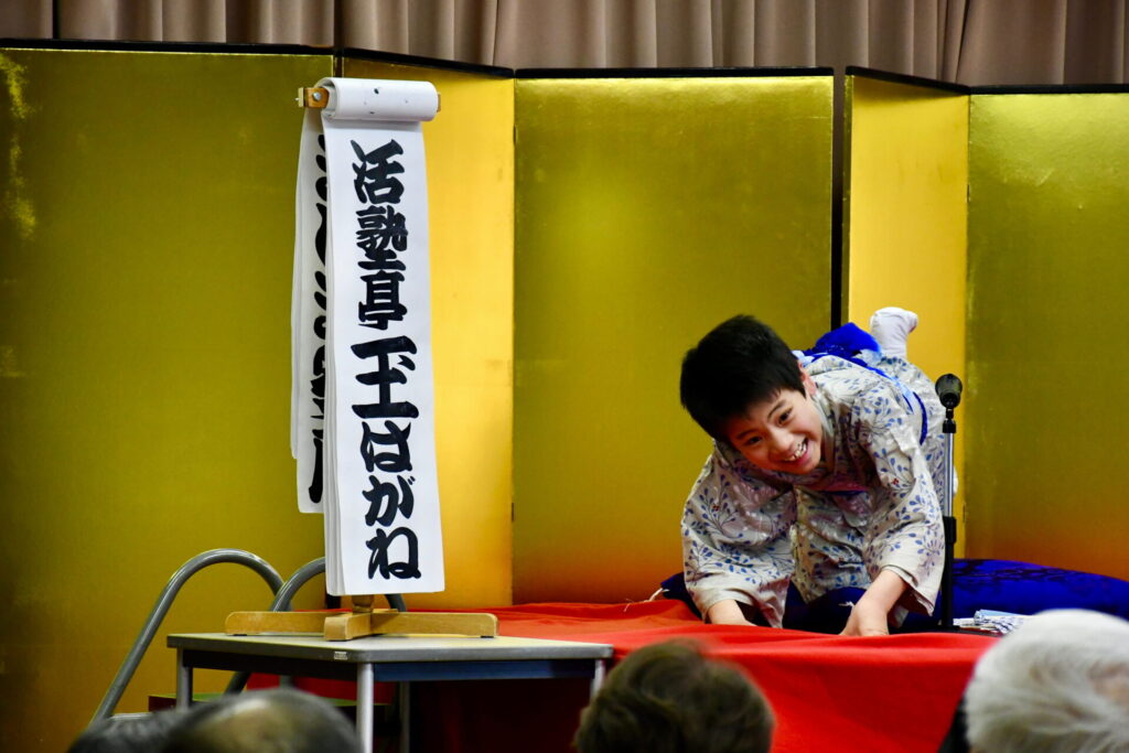 大雪になりましたが、会場にはいっぱいのお客様。トリを務める予定だった子が欠席になったため、あーとが同じ演目で代演をしました。いる歌、あーとの怪談は、ちょうど今の時期ぴったりで、哀れさが際立ちました。落語や小咄、それぞれ稽古の成果を感じさせる出来映えでした。次の日も交流センターはこども落語のはなしでもちきりだったそうです。