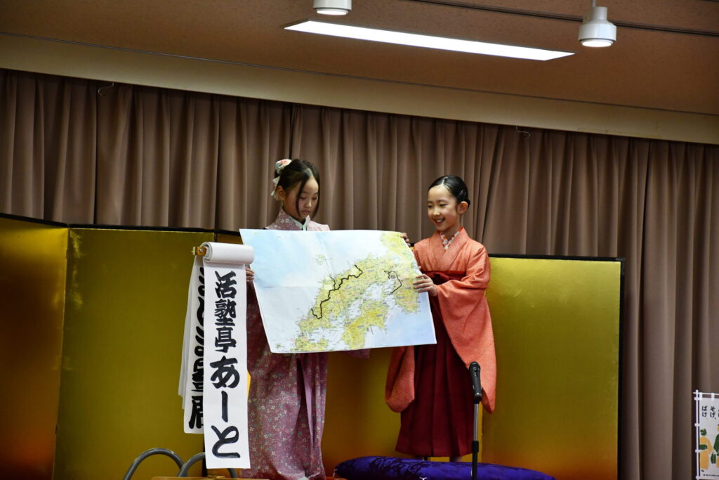 松江市本庄町内、南町の敬老会「長生会」のお招きでした。30分の短い寄席でしたが3人でぴったり。いる歌はネタおろしの「あたま山」を合わせて一人で15分をきっちり務めました。お客様からは「かわいい!」「上手!」とたくさん声をかけられて、みんな張り切って演じました。