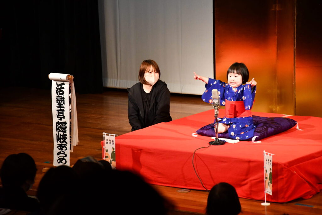 小さい子たちの小咄と落語、トリを大笑いで締めたふらめん子、満席のお客様にたっぷりと楽しんでいただきました。
