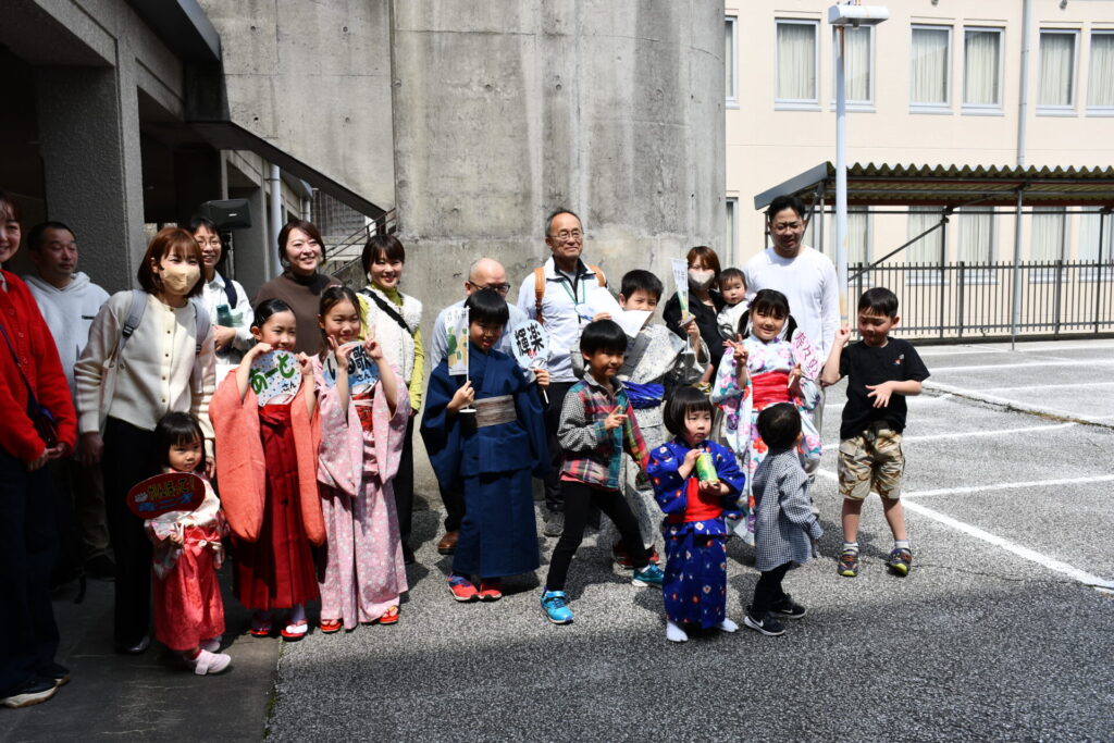 時季はちょっと違いますが小春日和と言いたくなるようなさわやかな日曜日、会場の坂本中集会所はちょうどいっぱいのお客様で理想的な寄席空間となりました。お客様の反応がすばらしく子どもたちもそれに勢いを得てノリノリでした。(写真は保護者)